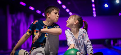 Time to turn down the lights and turn up the fun with your friends in our black light bowling atmosphere.